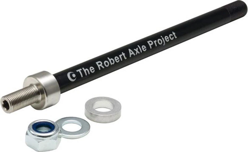 Avec cet axe traversant de 12 mm The Robert Axle Project pour les remorques de Burley, Chariot, Thule, Croozer et bien d’autres, il est facile de les fixer à votre vélo. Remplacez l’axe traversant existant par un axe Robert et connectez votre remorque au VTT.