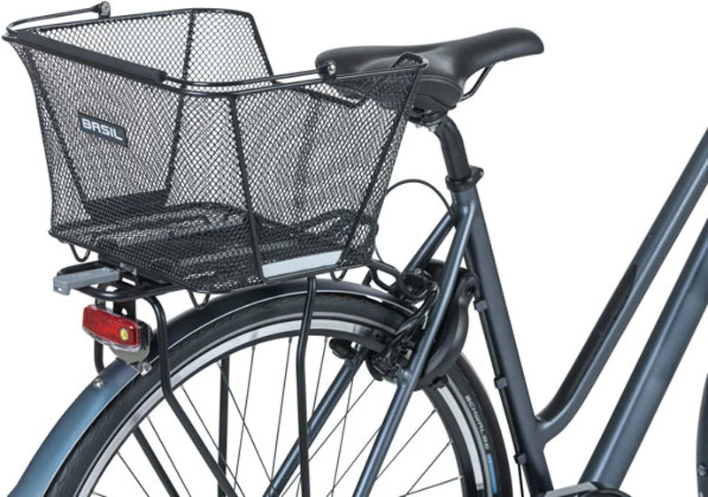 Le panier arrière Basil Lesto MIK est un panier à vélo en acier à mailles fines, adapté au porte-bagages du vélo. Le panier est facilement amovible et possède une anse avec une poignée souple. Cela en fait un panier à vélo facile à porter. Tu fixes ce panier à vélo sur ton porte-bagages dans le sens transversal. Cela se fait à l’aide de la plaque d’adaptation MIK prémontée.