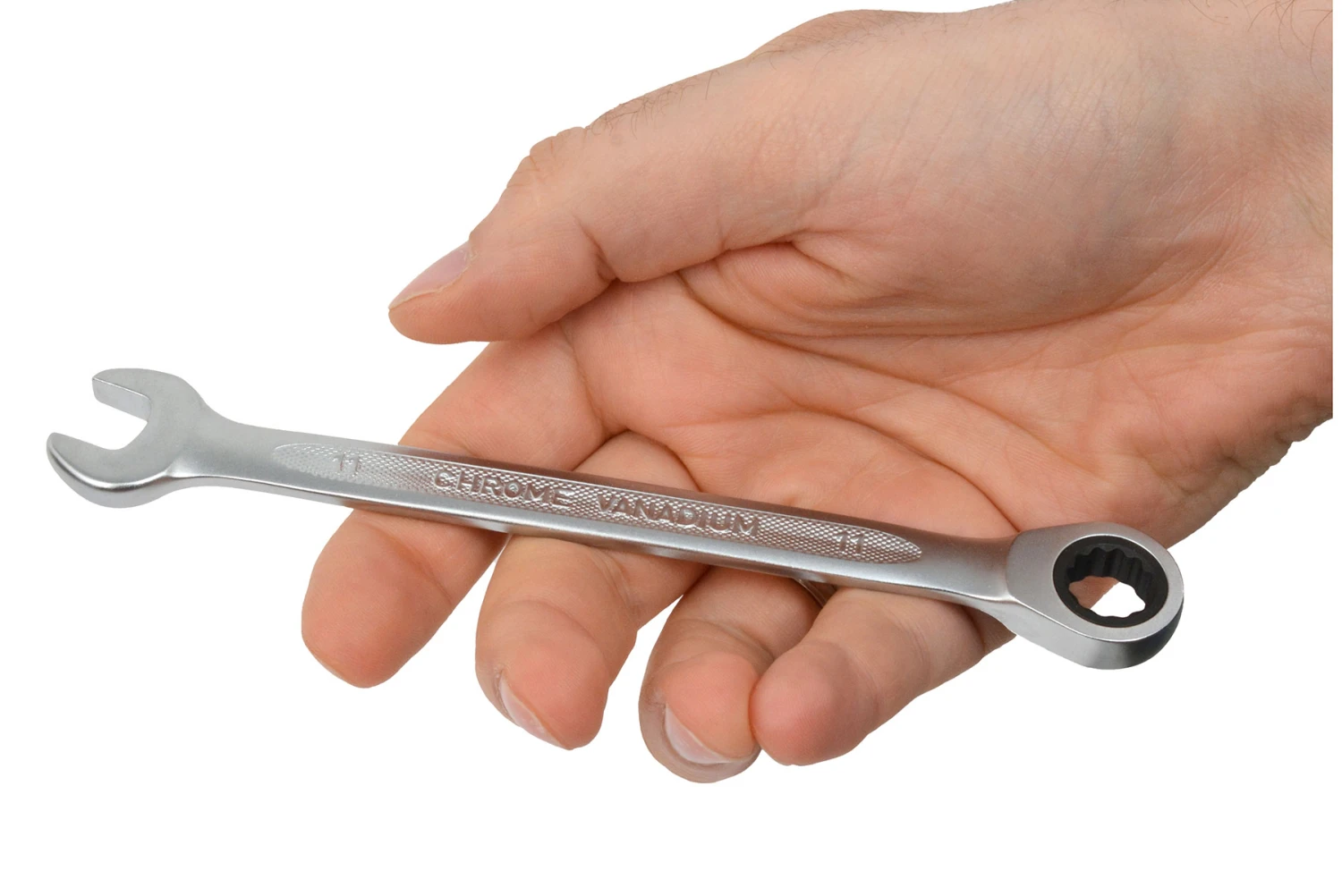La clé mixte à cliquet Radon Pro est à la fois une clé mixte et une clé à fourche de qualité supérieure en acier au vanadium, réunies en un seul outil.