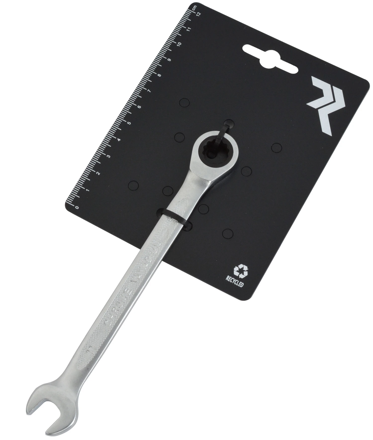 Une clé mixte à cliquet à deux voies est toujours utile pour réparer un vélo. Et le fait de ne pas avoir à poser le pied sur la clé à cliquet pendant le vissage peut s’avérer être un grand avantage. De nombreux raccords à vis avec des têtes de différentes tailles attendent d’être desserrés ou serrés. Pour les endroits difficiles d’accès, la version simple de la clé plate est disponible à l’autre extrémité. Un outil pratique qui ne doit manquer dans aucun atelier de réparation de vélos – et qui est également un outil de base dont on a toujours besoin pour les visseurs amateurs.