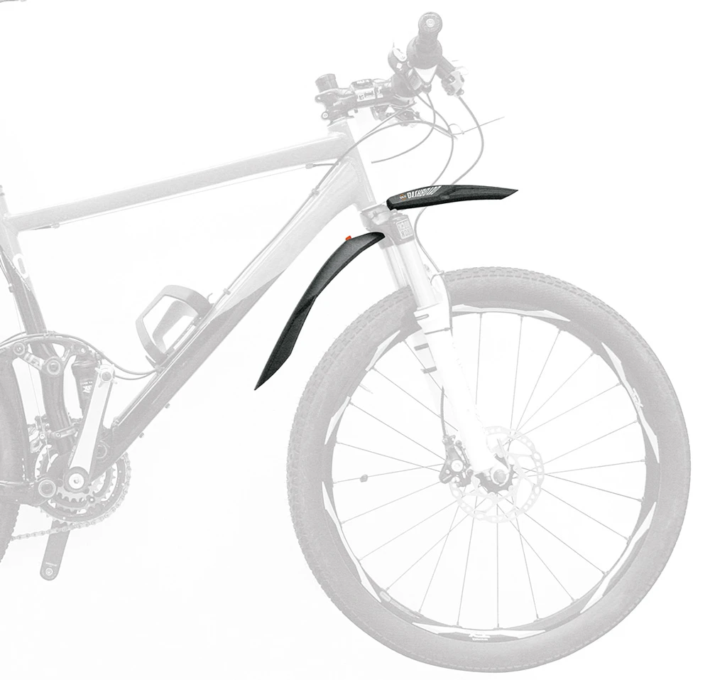Ultra light SKS Germany snap-on front mudguard with cool, stealthy appearance. The DASHBOARD is compatible with most suspension forks.