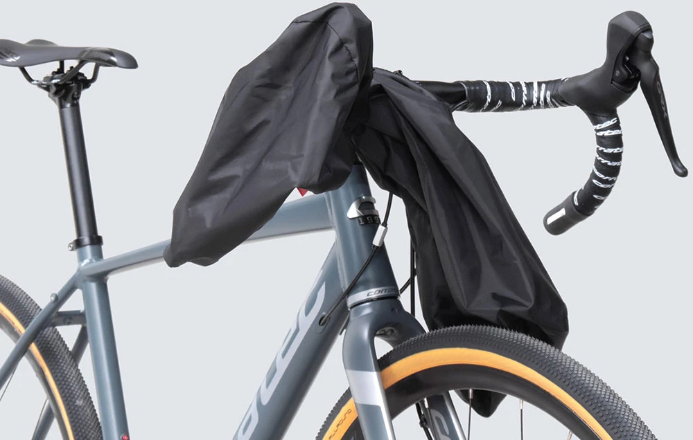 La housse n’est pas étanche à l’eau, afin que l’humidité qui pénètre par l’ouverture d’accès et l’eau de condensation qui se forme éventuellement puissent s’échapper. En cas d’humidité à l’intérieur de la housse, ouvrez-la et laissez-la sécher comme le guidon.