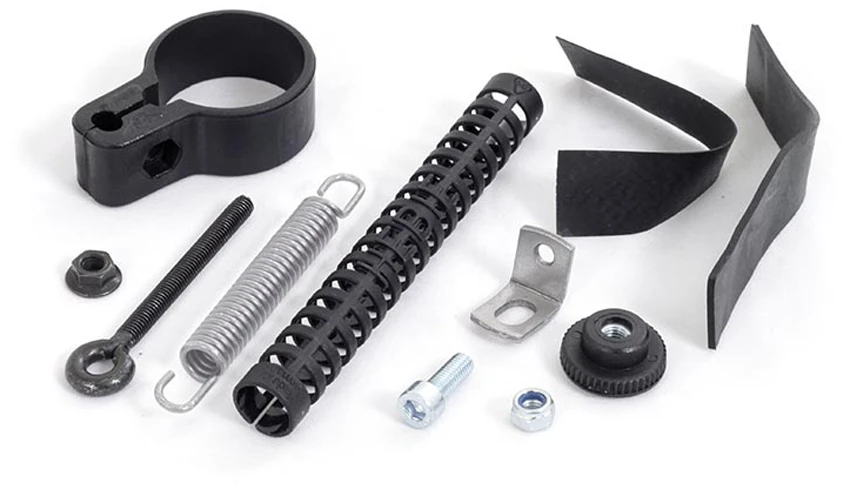 - y compris le ressort, le couvercle, l’étrier en plastique et les fixations