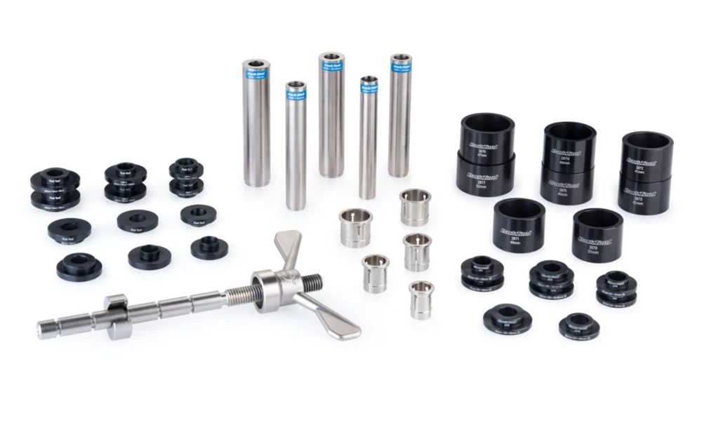 Le BBP-2 de Park Tool est un kit complet pour le remplacement des boîtiers de pédalier Pressfit, des coupelles Pressfit et des adaptateurs Pressfit. Il comprend une unité pressfit et des accessoires compatibles pour retirer et installer la plupart des configurations de pédalier pressfit.