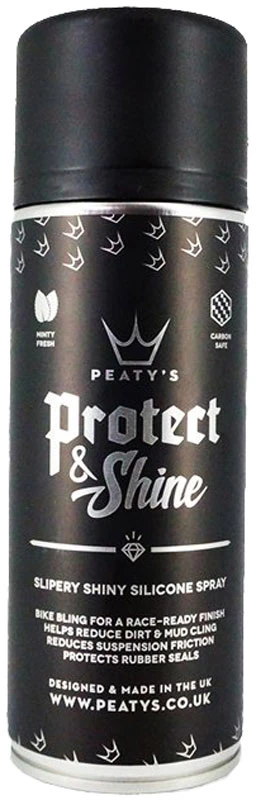 Ton vélo bien-aimé a-t-il l’air triste et fatigué après un trajet difficile et sale ? Le spray Peaty’s Protect & Shine est la solution ! Vaporise sur les peintures, les métaux, les plastiques ou les pièces en carbone pour redonner à ton cheval de course une finition digne d’une course. Vaporise avec parcimonie sur tes tubes verticaux et tes joints pour réduire les frottements, garder les arbres lisses et protéger les caoutchoucs d’un dessèchement prématuré.