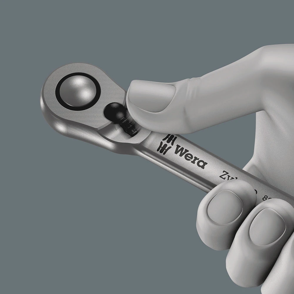 Les assemblages mécaniques sont de plus en plus compacts et les cliquets souvent trop massifs. Les cliquets aussi arrivent à leurs limites à l’étroit. Wera a résolu ce problème. Pour cela, nos développeurs ont étudiés des situations de travail dans des environnements exigus. En résulte le cliquet Zyklop Metal, extrêmement mince et robuste, mais relativement long. Changer le sens de vissage n’a jamais été aussi simple qu’avec le cliquet Zyklop Metal Switch.