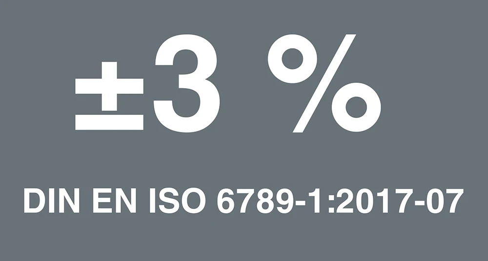 La précision est de ±3 % selon la DIN EN ISO 6789-1:2017-07.